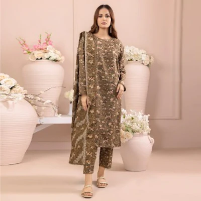 3 Piece Fiza Noor Women's Unstitched Wool Embroidered Suit